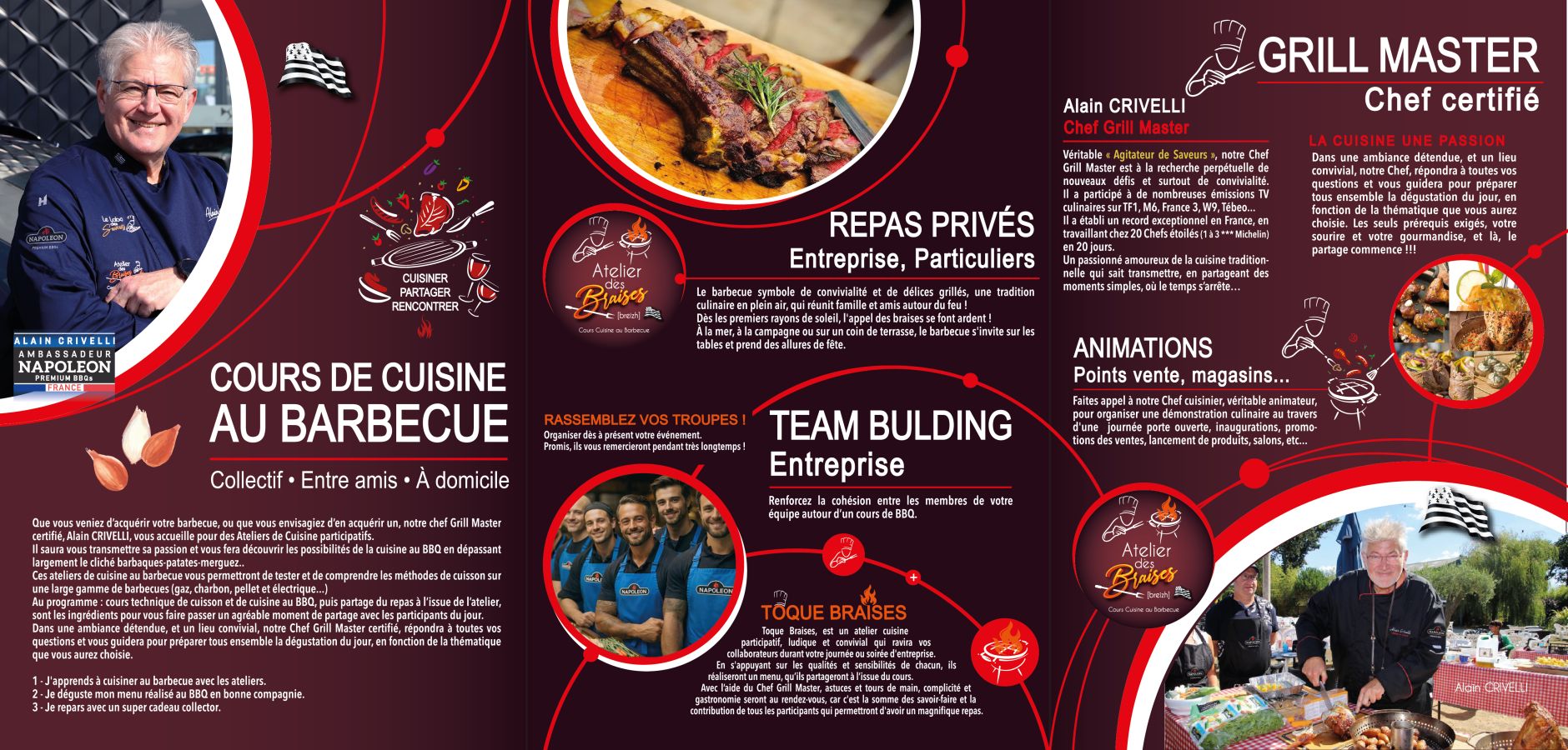 ⭐️⭐️⭐️⭐️⭐️ "Dans une ambiance chaleureuse, nous avons pris notre premier cours de BBQ avec Alain Crivelli; un chef sympathique, pédagogue qui a su mettre tout le monde à l'aise rapidement. Il nous a appris de nombreuses astuces et fait changer d'avis sur des certitudes bien ancrées .Ce fut un bon moment. Nous comptons nous inscrire rapidement pour un nouveau cours" [Eric Remeur]